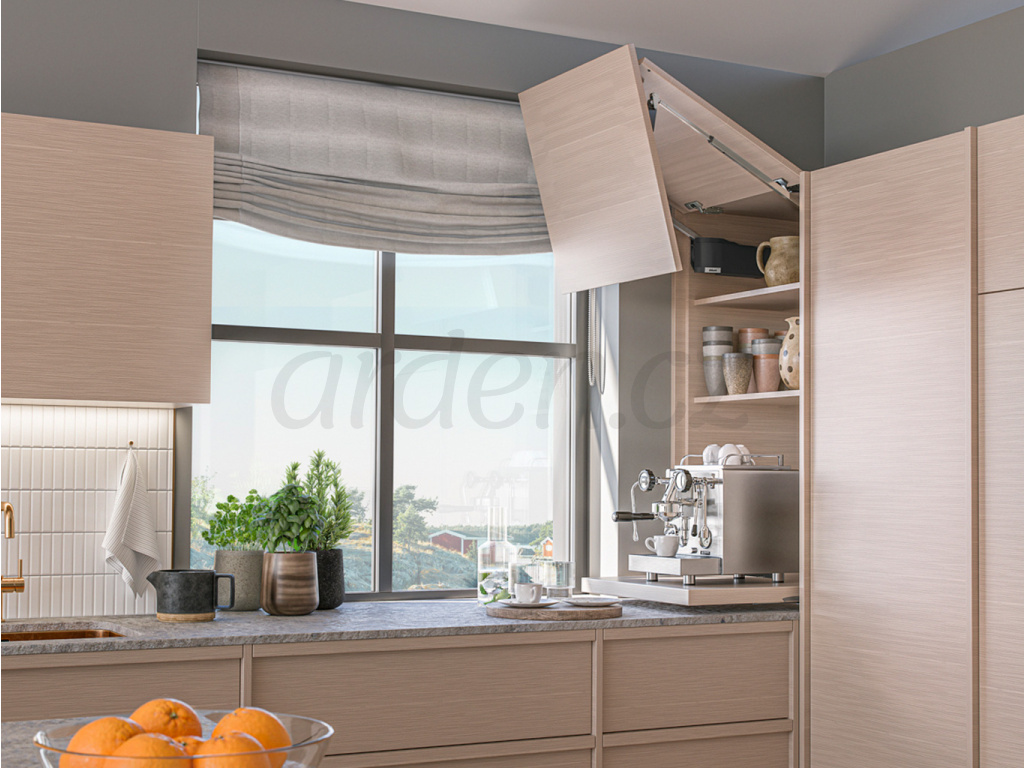 Použitím tohoto výklopného mechanismu docílíte komfortního otevírání i zavírání dvoudílných dvířek.