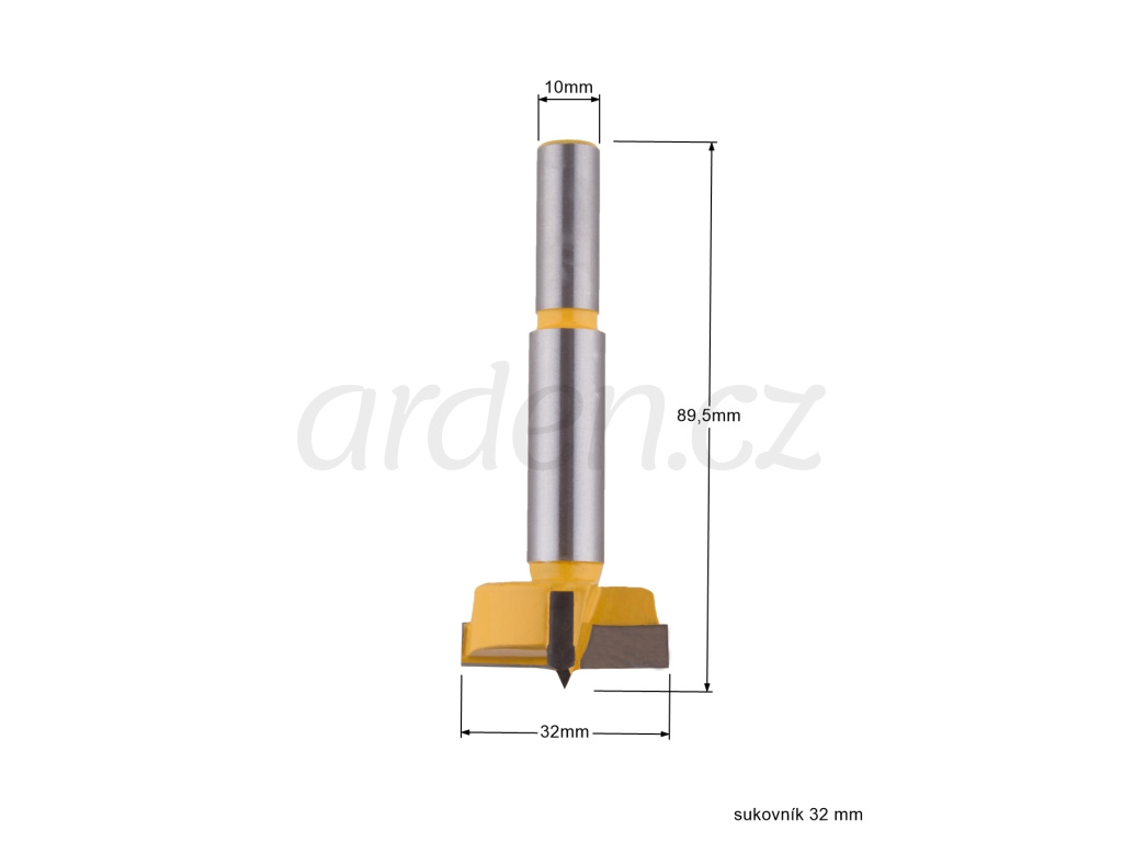 Tento vrták - sukovník má dva předřezávací hroty, středící hrot a dva řezné břity. Břity a hroty jsou vyrobené z tvrdokovu a sukovník můžete použít pro vrtání do měkkých nebo tvrdých dřevin, překližky a laminovaných dřevotřískových desek.